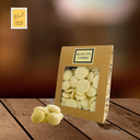 Une boite de notre fameux chocolat blanc 37% de cacao au caviar de vanille Bourbon en pistoles.